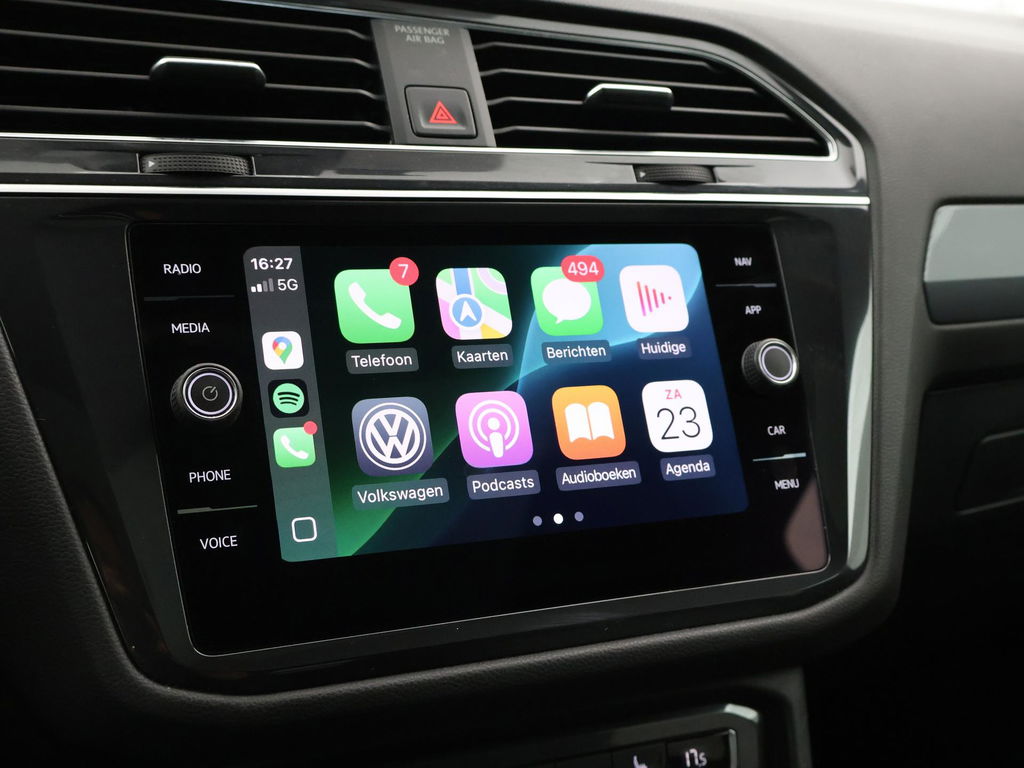 Tiguan Allspace 1.5 TSI 150 PK DSG Automaat, Origineel Nederlandse en 1e eigenaar auto, BTW verrekenbaar, Deep Black pearl exterieurkleur met R-Line sportpakket interieur + exterieur in de Highline uitvoering met Dynamic Chassis Control regelbaar adaptief onderstel, Afneembare trekhaak met 1800 kg trekgewicht, 20 inch lichtmetalen velgen, Panoramadak, Adaptive cruise control, Virtual cockpit / digitale cockpit, Navigatie, Apple Carplay / Android Auto appstreaming Google Maps, Flitsmeister, Spotify etc, Stoelverwarming, Achteruitrijcamera, Parkeersensoren voor + achter met automatisch inparkeerhulp, Dynaudio premium sound, LED koplampen, LED achterlichten, Elektrische achterklep, Dodehoek detectie.