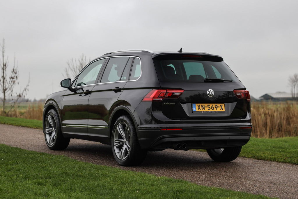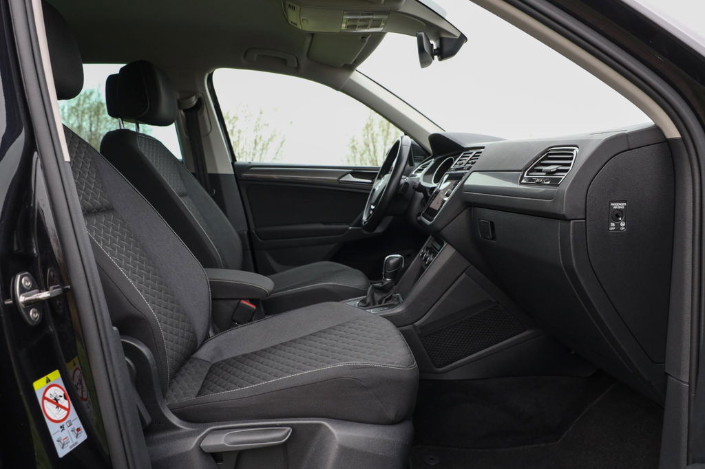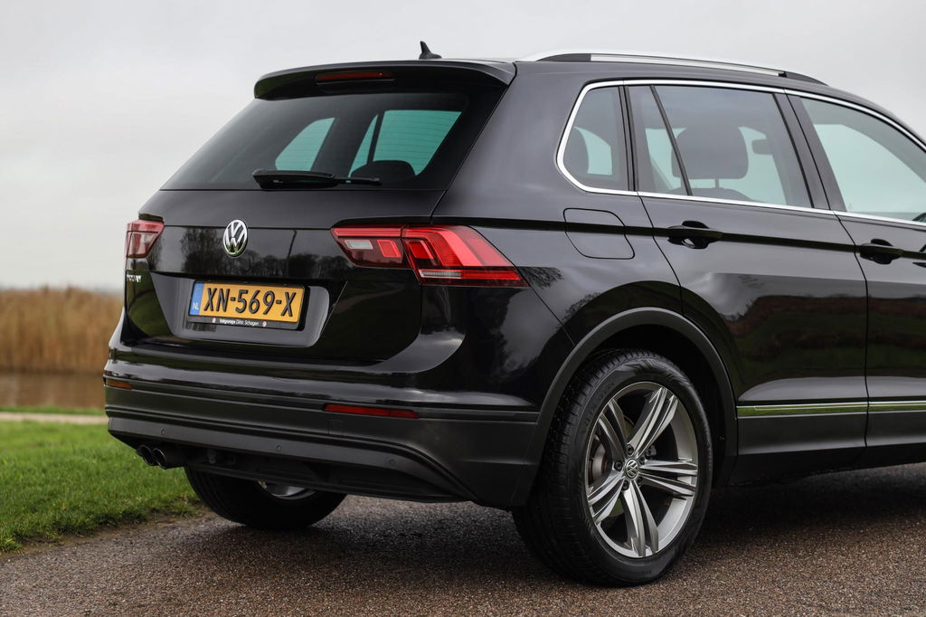 Deze Volkswagen Tiguan 150 PK Automaat in zwart biedt 19 Inch lichtmetaal, Discover Pro navigatie, een elektrisch bedienbare achterklep en comfortstoelen. De auto is uitgerust met verwarmde voorstoelen, automatische airco. Verder aanwezig: extra getint glas en parkeersensoren voor en achter.
