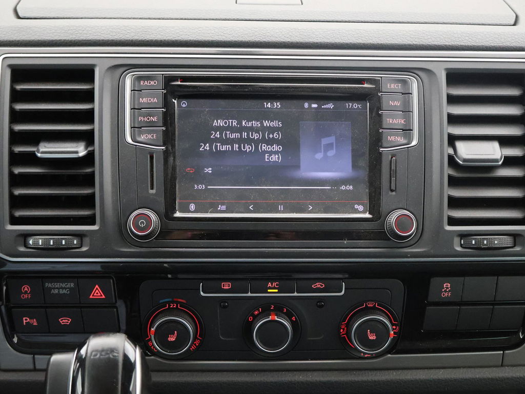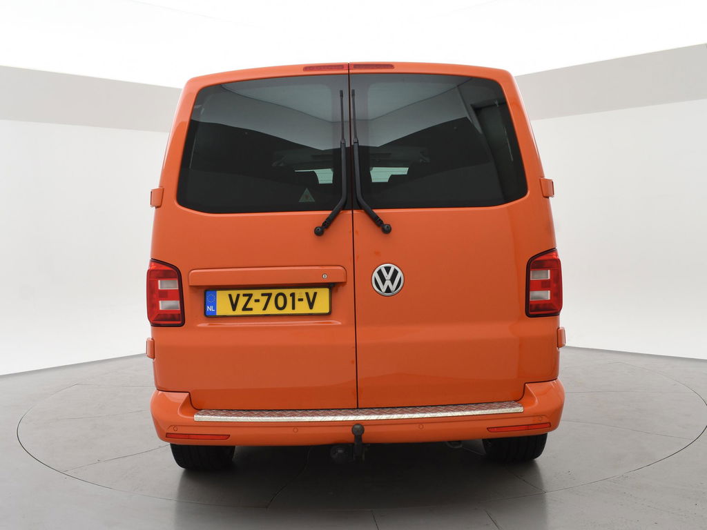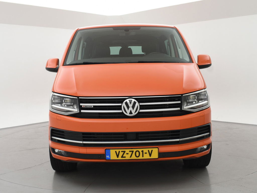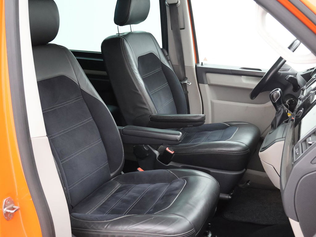 Origineel Nederlandse VW Transporter van 10-2016, 2.0 TDI 204 PK DSG Automaat, 4Motion, Dubbel cabine met 5 zitplaatsen, De Striping op de zijkanten zijn stickers en kunnen worden verwijderd, Elektrisch schuif/kanteldak, Adaptieve cruise control met regelbare afstand op de voorganger, Leder alcantara interieur met stoelverwarming, 20 Inch lichtmetalen velgen, Bluetooth telefoonverbinding met audiostreaming, Trekhaak met 2500 KG trekgewicht, Sidebars, LED koplampen, LED dagrijverlichting, Airco, Achteruitrijcamera, Parkeersensoren voor + achter, Multifunctioneel leder stuurwiel, Prijs is exclusief BTW.