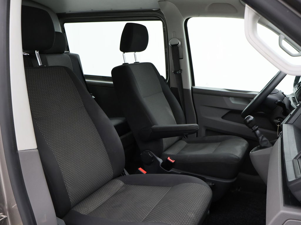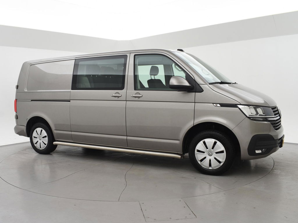 Dubbel cabine Transporter T6.1 het laatste model van de échte Volkswagen Transporter, Verlengde uitvoering L2H1 dubbel cabine met 6 zitplaatsen, 2.0 TDI 150 PK met 6 versnellingen, Mojave beige metallic exterieurkleur, Comfort bestuurdersstoel met 2 armleuningen, Apple Carplay / Android Auto appstreaming Navigatie, Google Maps, Flitsmeister, Spotify Whatsapp etc, Trekhaak met 2500 kg trekgewicht op kenteken, Cruise control, Airco, RVS sidebars, Mistlampen, Parkeersensoren, 2 achterdeuren met ruiten en ruitenwissers, Bluetooth met audiostreaming, Bumpers en buitenspiegels in carrosseriekleur.