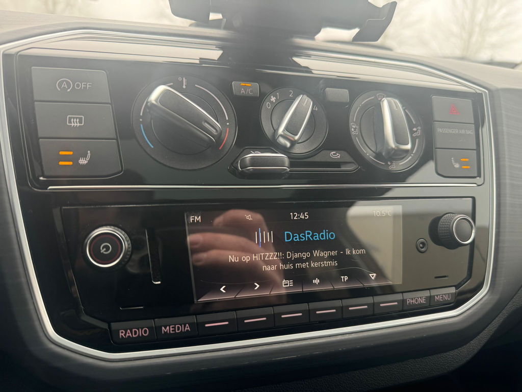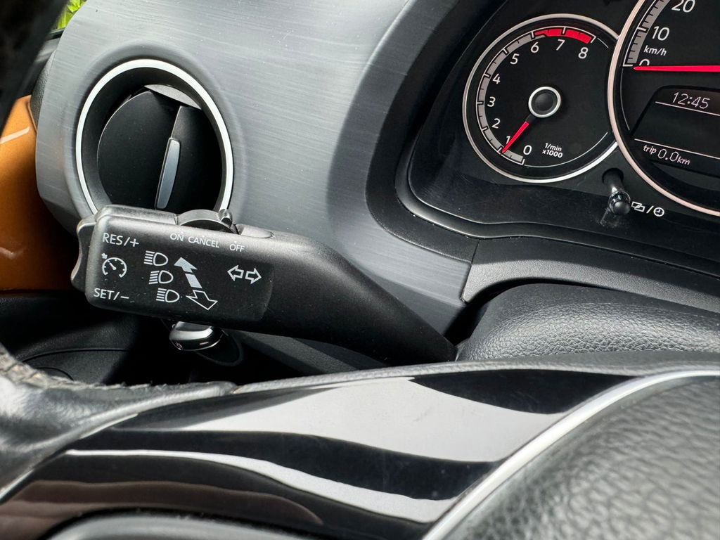Parkeerplekken worden er niet ruimer op. Maar met de aanwezige parkeersensoren krijgt u deze Volkswagen Up! zonder problemen op z'n plaats. Het hoort bij een intelligente auto als deze dat hij zelf in staat is om zijn omgeving in de gaten te houden. Dat doet deze Volkswagen met een automatisch inschakelbare verlichting en een regensensor. Cruise control is ook een van de meegeleverde opties. Muziek vanaf uw telefoon draadloos afspelen via de autoradio? Met smartphone connectiviteit heeft u altijd uw favoriete muziek bij de hand. Deze auto heeft airconditioning aan boord. De uitrusting van deze auto is met lederen stuur, centrale deurvergrendeling met afstandsbediening, boordcomputer en lederen versnellingspook behoorlijk compleet.