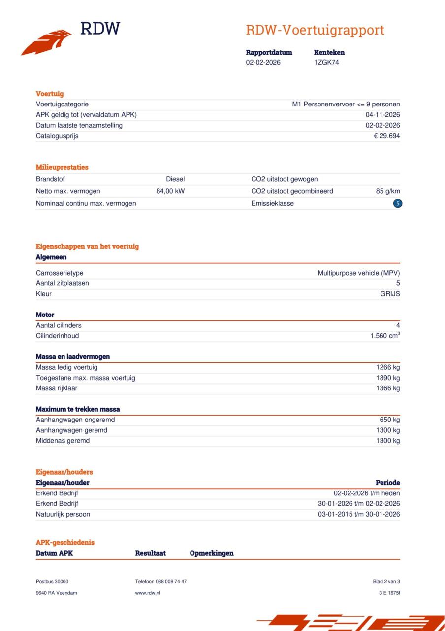 | Vermogen: | 84 kw / 115 pk |