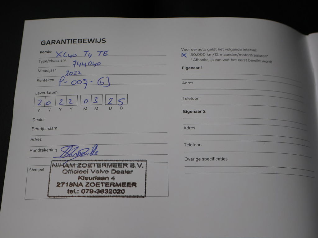 EU verantwoordelijke: Volvo Nederland B.V. Postbus 16 4153 ZG Beesd, NL 0345-688888 contact.vcnl@volvocars.comOrigineel Nederlandse auto, BTW verrekenbaar, T4 Recharge 1.5 benzine + plug-in hybrid 211 PK Automaat, Onyx black metallic met zwart volledig leder interieur met verlengbaar zitvlak, Adaptive cruise control, Elektrisch inklapbare trekhaak origineel vanaf fabriek met 1800 kg trekgewicht op kenteken, Full LED koplampen, 21 inch lichtmetalen velgen, Digitale cockpit / tellers met navigatie kaartweergave, Achteruitrijcamera met aparte trekhaakmodus, Stuurwielverwarming, Stoelverwarming, Elektrische achterklep, Privacy glass, Climate control, DAB Digitale radio, Lijnassistentie, Verkeersbordenherkenning, Orrefors Sweden glazen automaatpook, Climate control, Bluetooth met audiostreaming, Apple Carplay / Android Auto appstreaming Google Maps, Flitsmeister, Whatsapp etc, Draadloze telefoonlader, Parkeersensoren voor + achter, Elektrische achterklep.