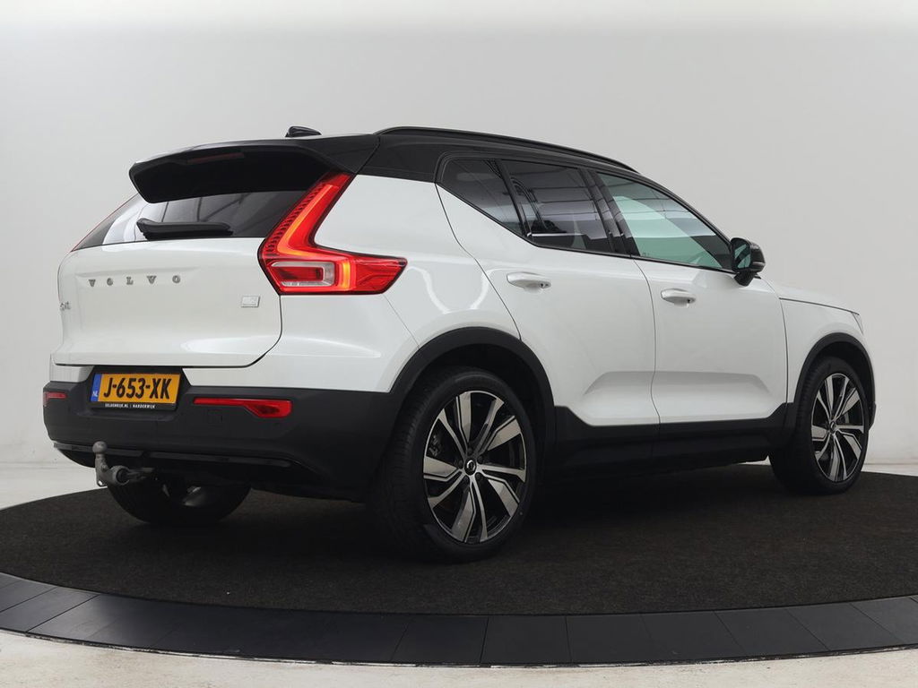 Elektrisch rijden is ontspannen rijden. Achter het stuur van deze Volvo XC40 kunt u zich in alle rust concentreren op de weg. Dankzij de automatische transmissie en elektrische aandrijving, navigeert u gemakkelijk door het verkeer. Zelfs op de koudste dagen zorgt het verwarmbare stuurwiel, de voorstoelen en de achterbankverwarming ervoor dat u en uw passagiers het nooit koud hebben in deze luxueuze auto. Als u blij wordt van licht en ruimte dan zult u zeker genieten van het elektrisch bediende panoramadak. De elektrische achterklep opent met een druk op de knop, zodat u gemakkelijk toegang heeft tot de bagageruimte. Ook 19 inch lichtmetalen velgen, LED koplampen, sportonderstel, in delen neerklapbare achterbank, LED-achterlichten en verstelbare lendensteunen zijn aan boord.